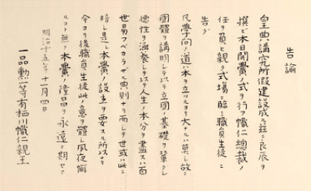 國學院大學の母体「皇典講究所」創立。初代総裁は有栖川宮幟仁(たかひと)親王、場所は東京・麹町区飯田町(現・千代田区飯田橋)。9月1日、授業開始。11月4日、開校式。ここに本学は晴れの第一歩を記す。