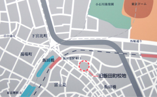 旧飯田町校地の場所(現在の地図をもとに作成)