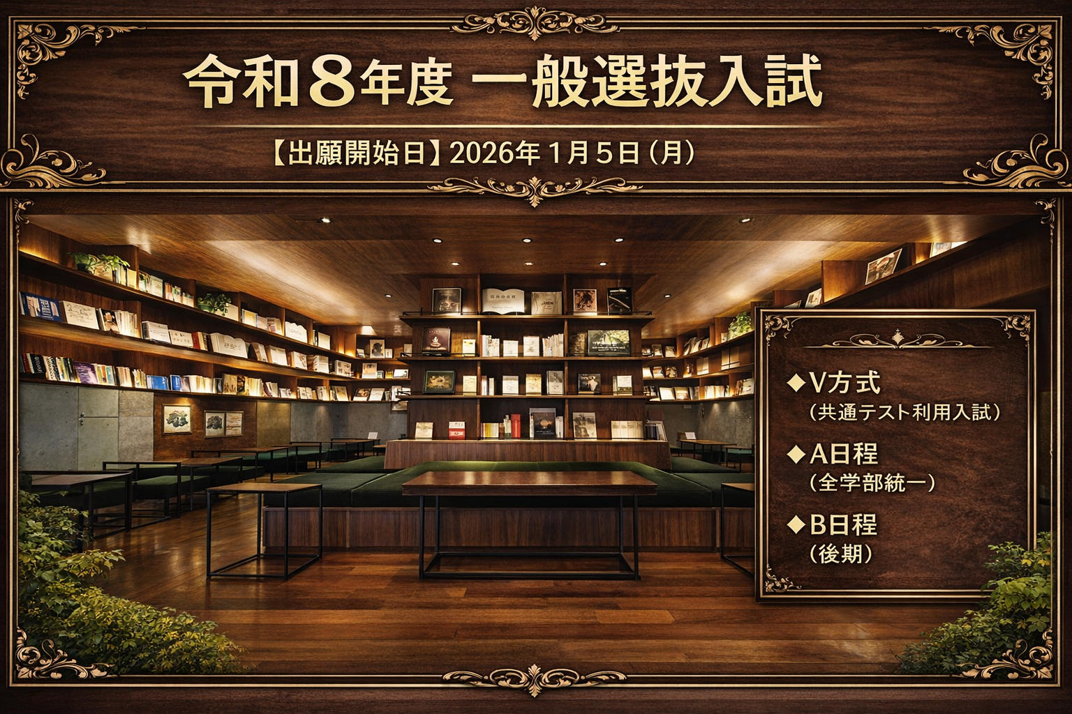 本年度よりV方式(大学入学共通テスト利用入試)にて、Web方式を採用しております。