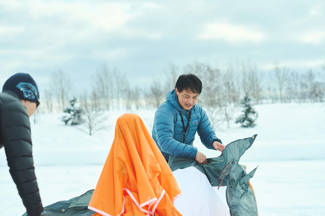 お二人が共通して問題視するのは、体験機会の少なさや、ちょっとしたコツを教えてくれる身近な大人がいないこと。そこで後編では、「毎日がアウトドア」な田中一徳教授の案内で、実際に氷上のワカサギ釣りを体験してみることにしました。