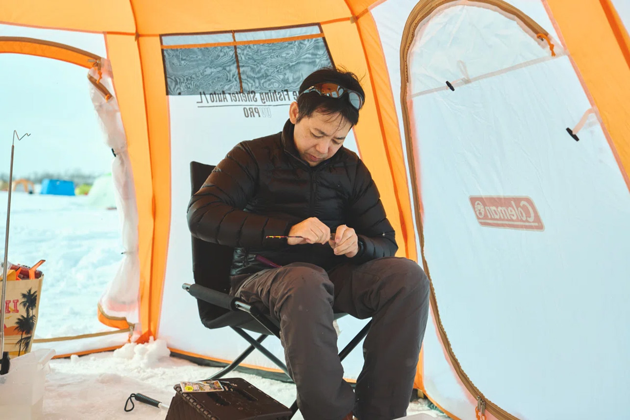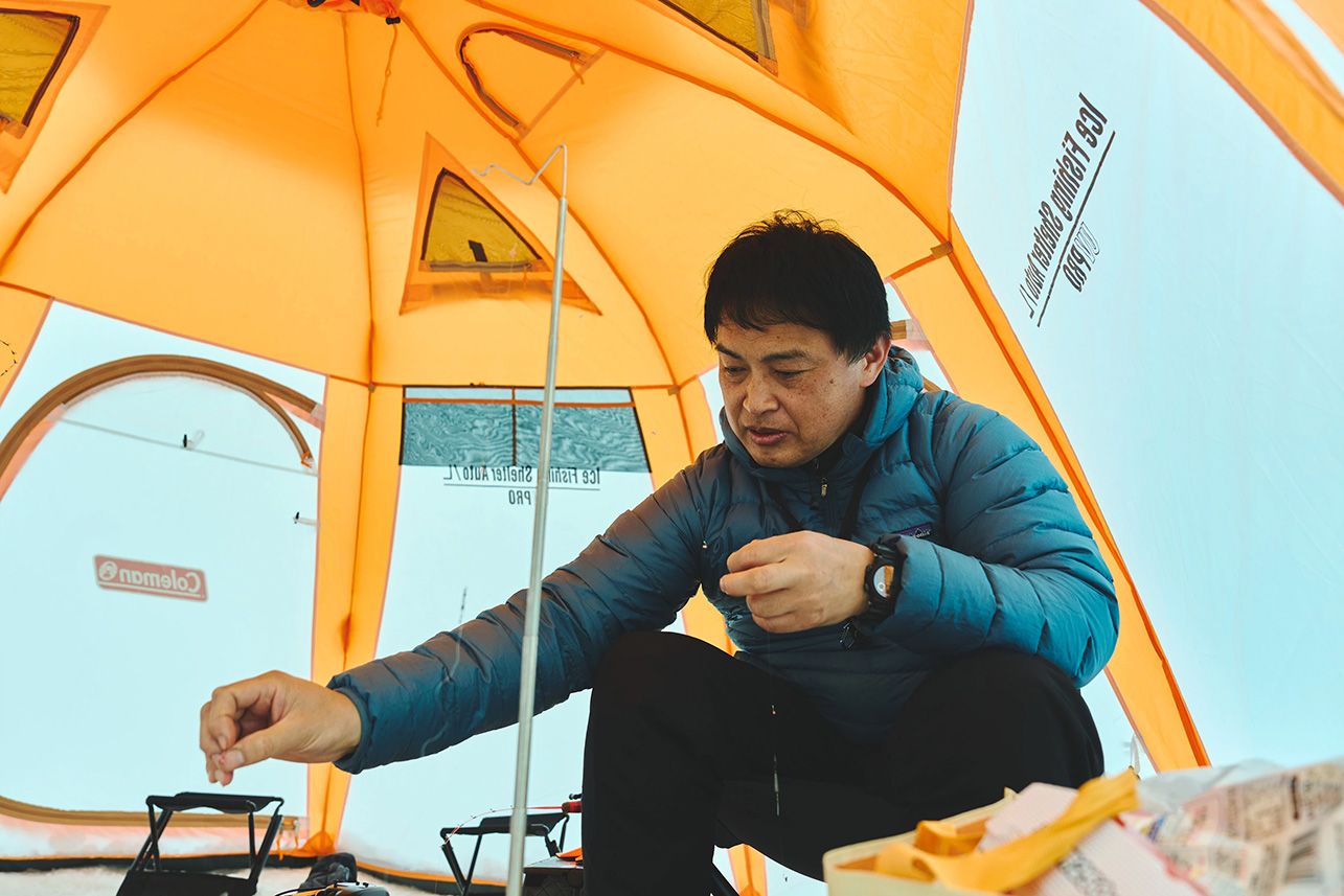 田中「これには諸説あります。ワカサギも音に反応して逃げるので、足音や競争を嫌って遠くにポツンとテントを立てる人もいれば、『密集しているほうが餌を求めるワカサギが集まりやすい』と主張する人もいる。人の数だけスタイルがあるのも、ワカサギ釣りの面白いところです」