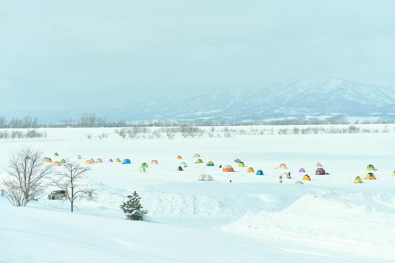 舞台は、滝川市の南に隣接する砂川市。「砂川オアシスパーク」は、旧石狩川の跡地を利用して造成された水辺のレクリエーションエリアです。夏場はヨットやカヌー、サイクリングを楽しむ人も。氷上ワカサギ釣りは、湖面に分厚い氷が張る、冬の約1か月間が勝負です(取材当時のシーズンは2月28日に終了)。