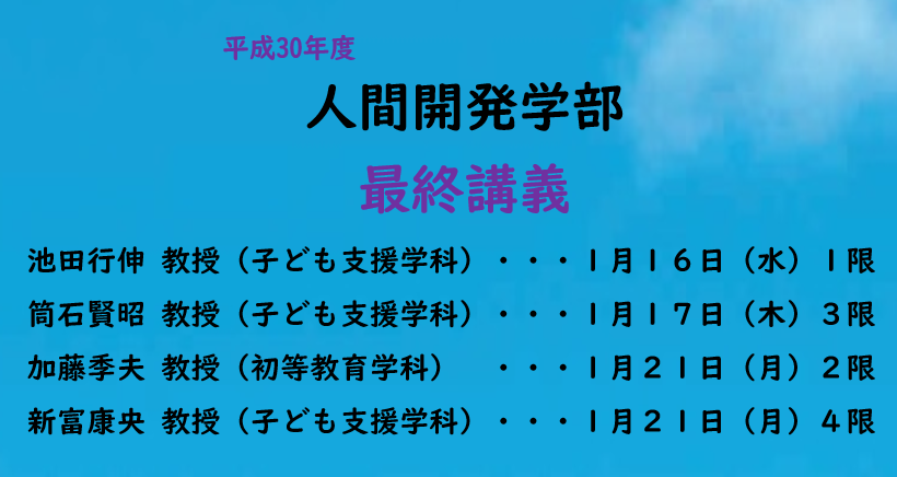 1月16日(水) 1限 102教室 「発達と学習」 |