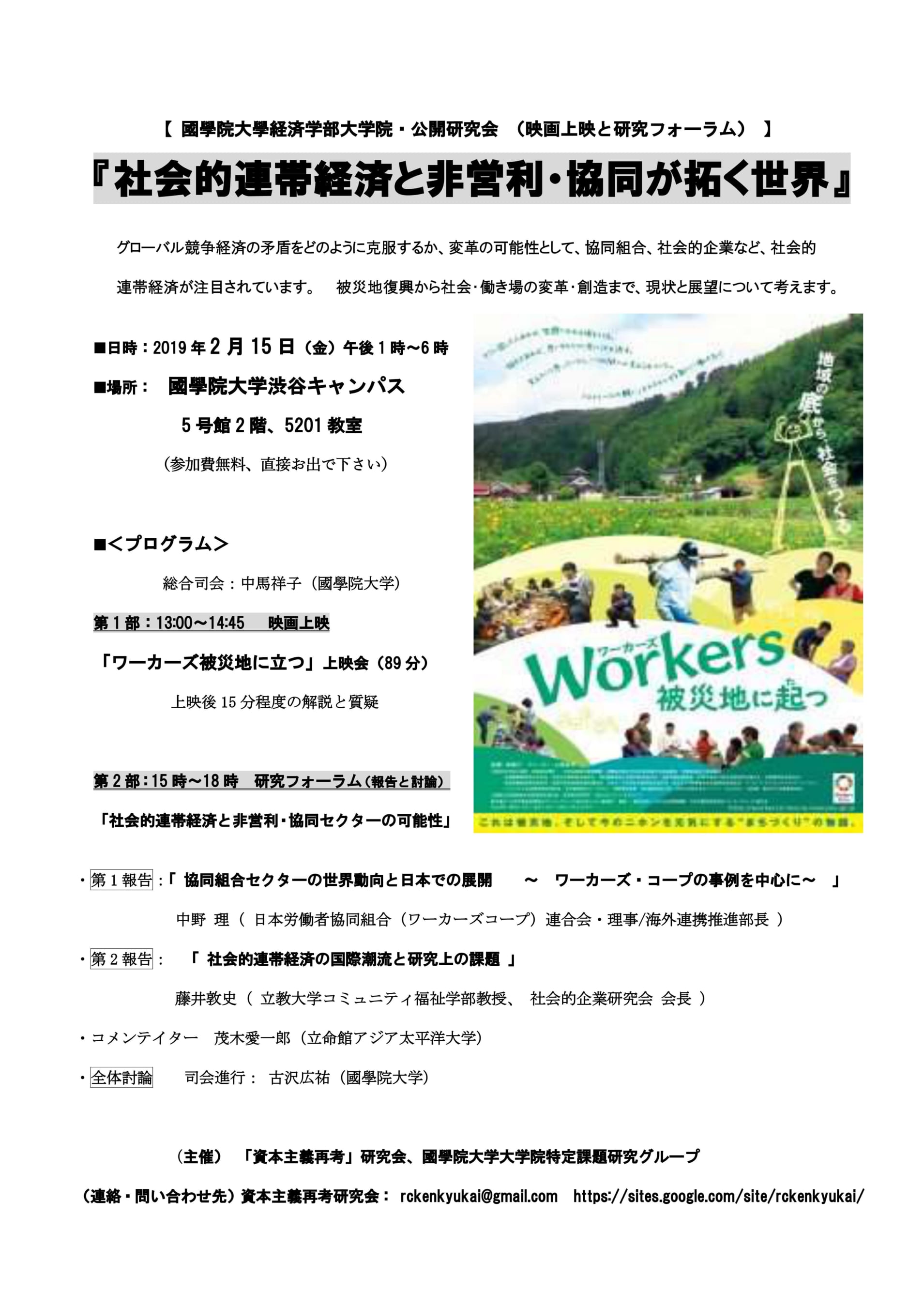 (主催) 「資本主義再考」研究会、國學院大学大学院特定課題研究グループ