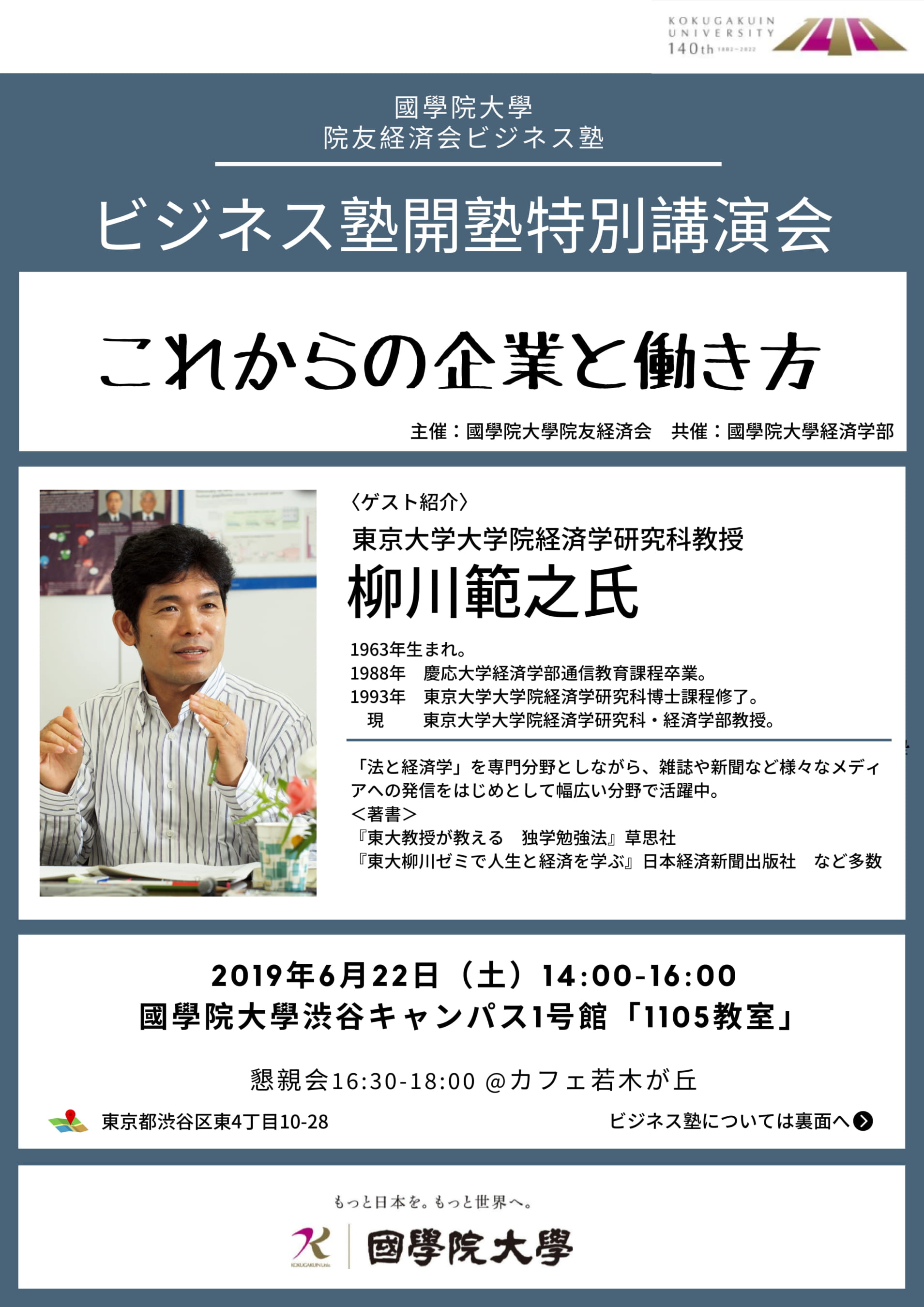 | 内容 | 「これからの企業と働き方」 柳川範之氏 東京大学大学院経済学研究科教授 |