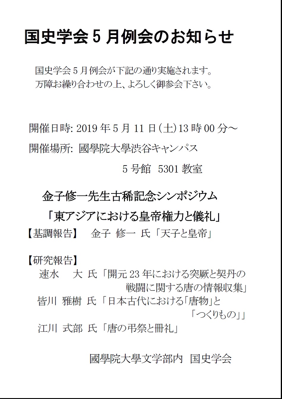 | 問い合わせ | 国史学会・文学部資料室(tel 03-5466-0246) |