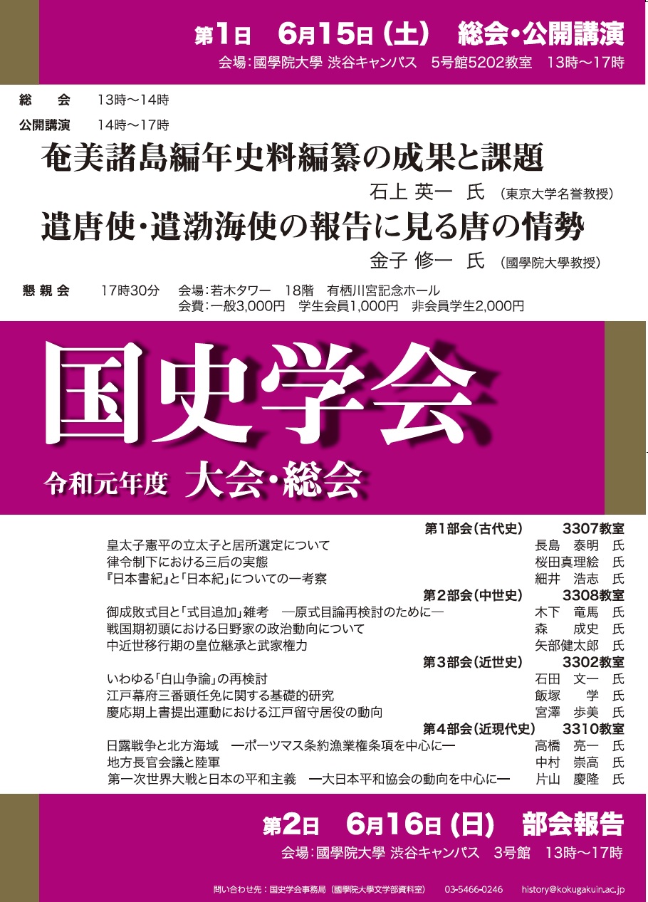 令和元年度 国史学会大会・総会を下記の通り開催いたします。