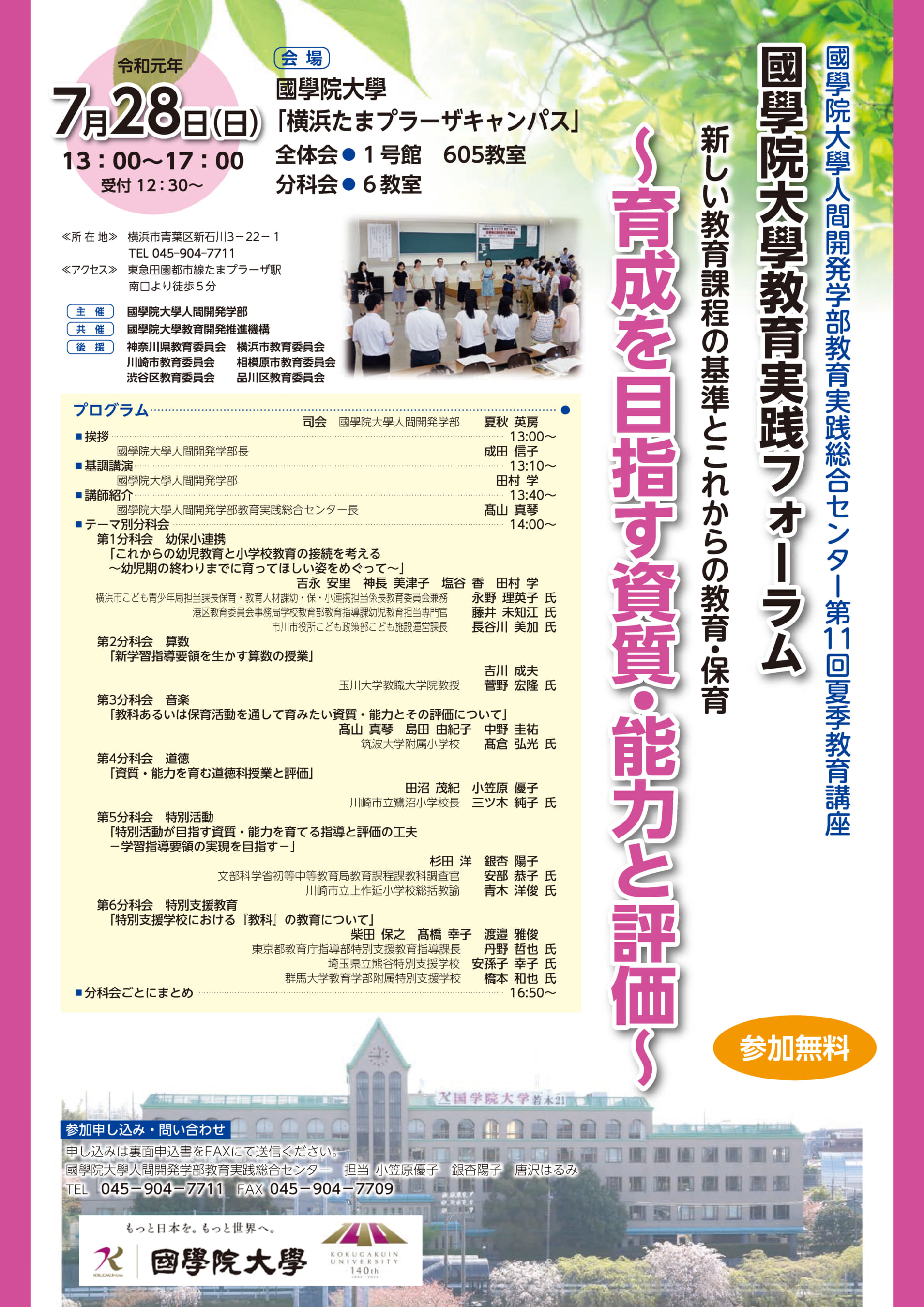 司会 國學院大學人間開発学部 夏秋英房 ▪基調講演……… 13:10 ▪講師紹介……… 13:40 ▪テーマ別分科会 ……………… 14:00 第2分科会 算数 第3分科会 音楽 第4分科会 道徳 第5分科会 特別活動 第6分科会 特別支援教育 ▪分科会ごとにまとめ ………… 16:50 |