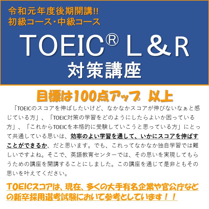 英語教育センターでは、下記の通り、TOEIC対策講座を開講いたします。