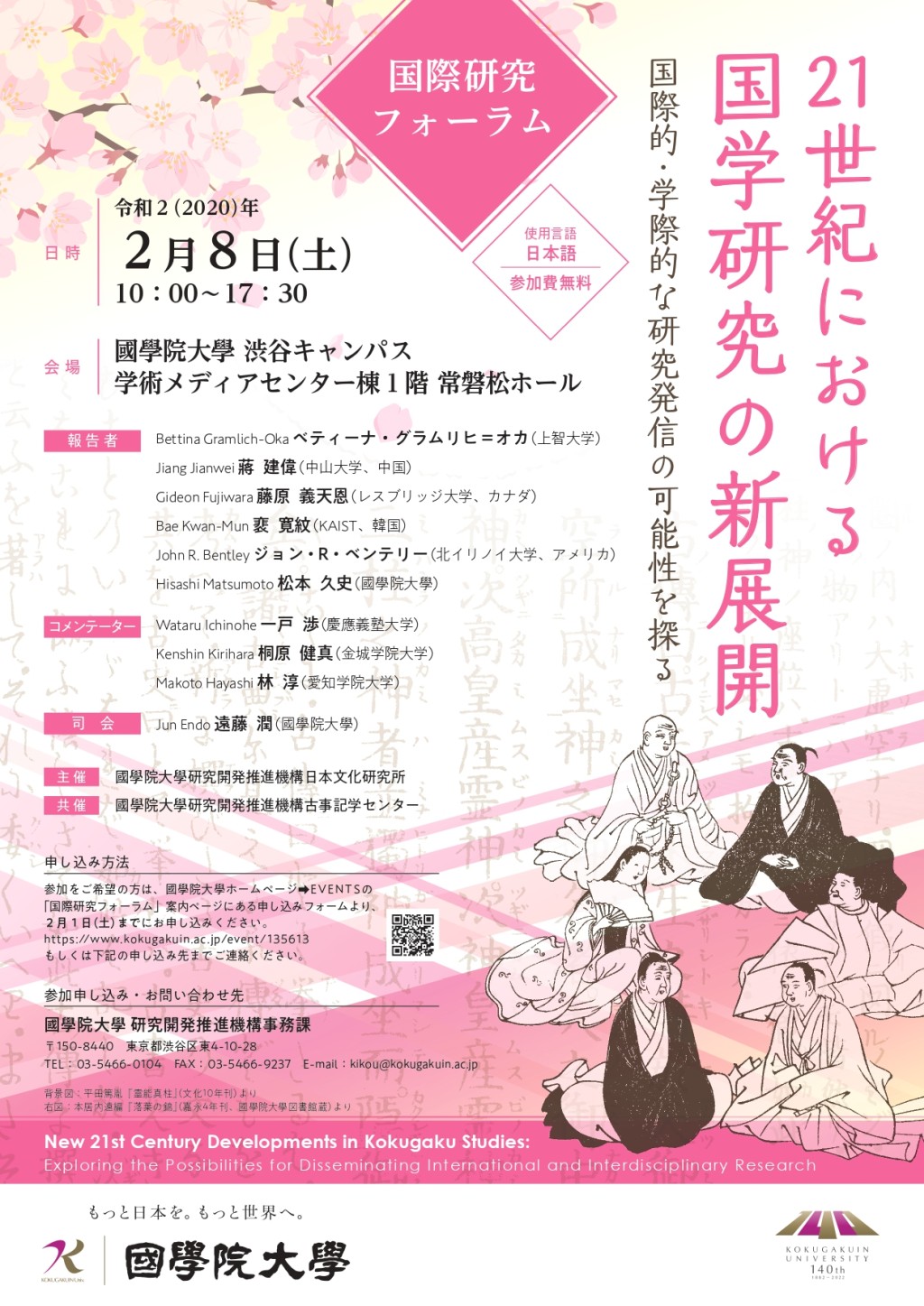 国際研究フォーラム「21世紀における国学研究の新展開 国際的・学際的な研究発信の可能性を探る New 21st Century Developments in Kokugaku Studies: Exploring the Possibilities for Disseminating International and Interdisciplinary Research」