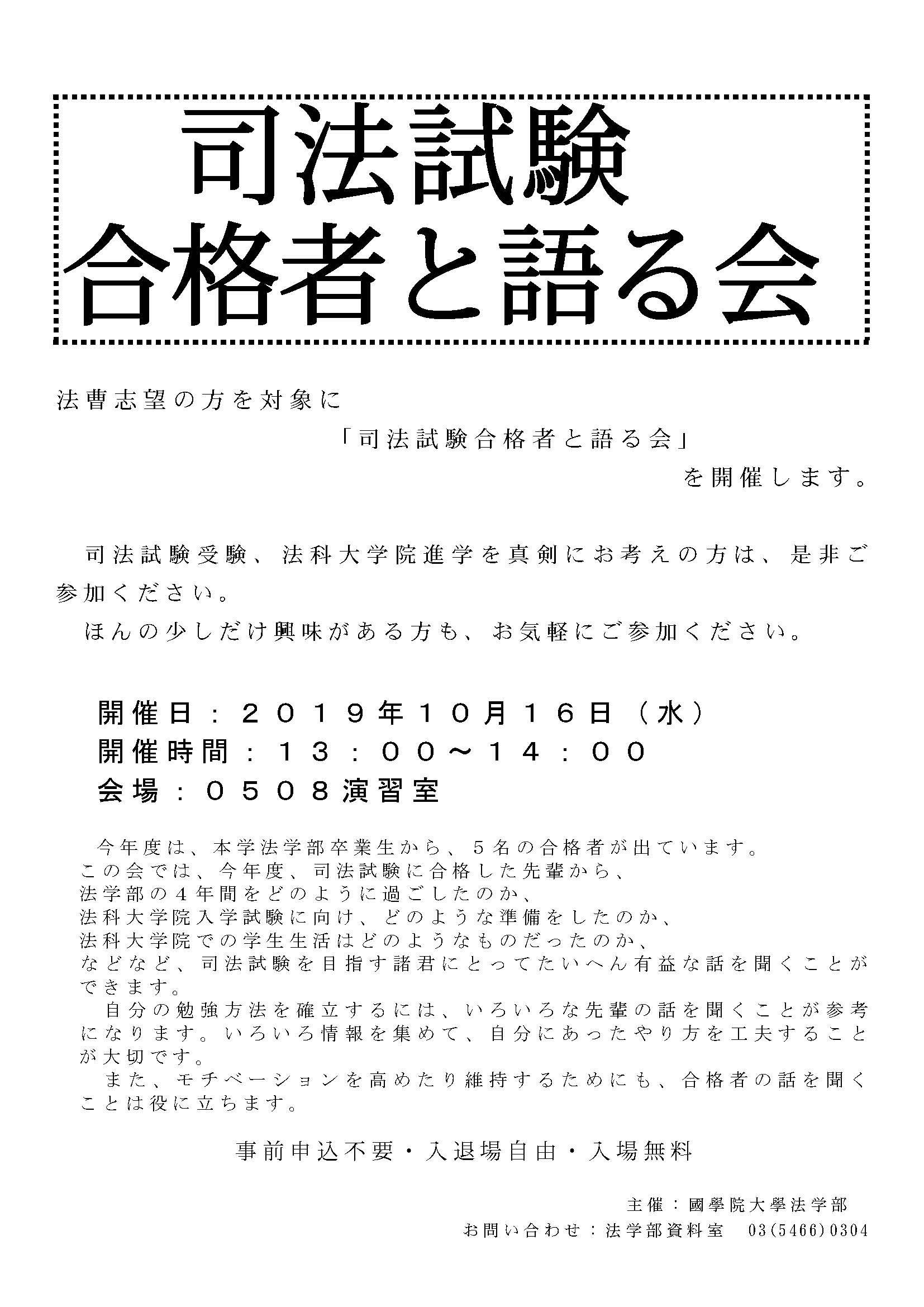 法学部では今年も「司法試験合格者と語る会」を実施します。