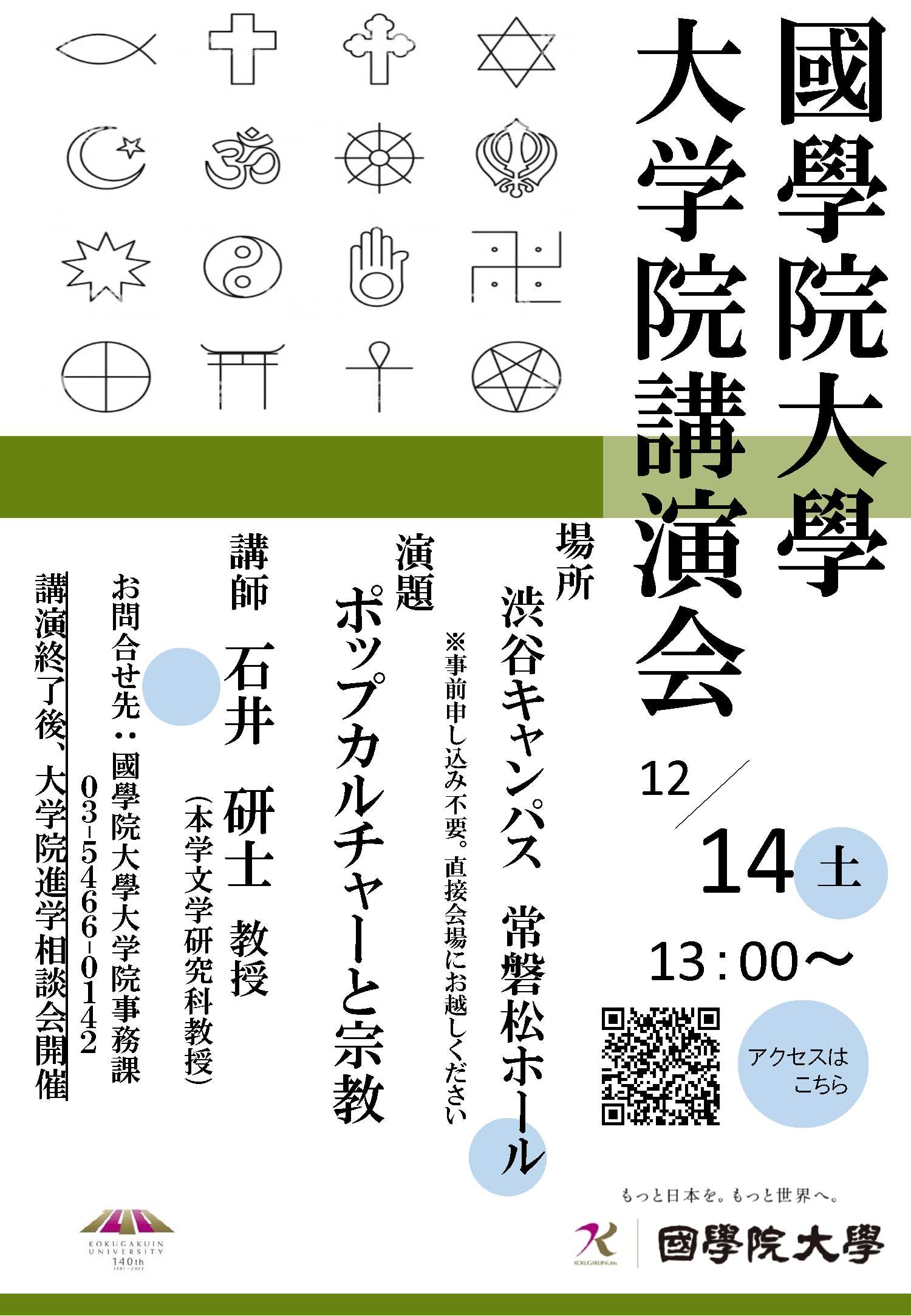 講師:石井 研士(本学文学研究科教授) 演題:ポップカルチャーと宗教 |