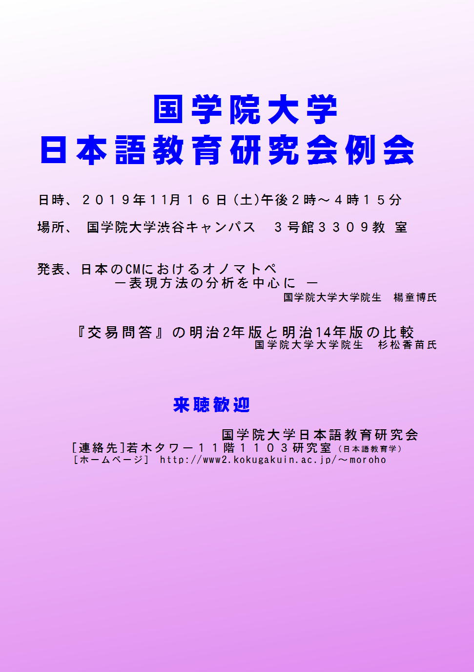 このページに対するお問い合せ先: 国学院大学日本語教育研究会 若木タワー11階 1103研究室 (日本語教育学)