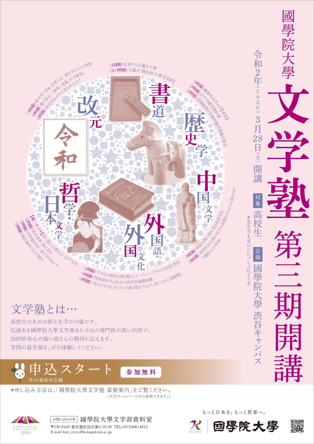 本学文学部では、次年度も文学塾開催を予定しております。改めて、ご参加をご検討いただけますと幸いです。