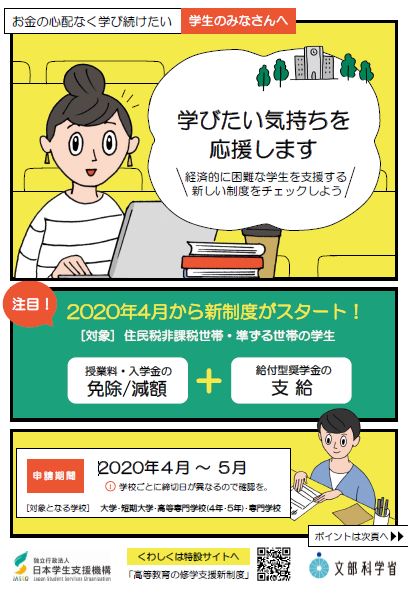 このたび國學院大學では、高等教育の修学支援新制度・日本学生支援機構奨学金の募集に際し、新型コロナウイルスによる感染防止対策の観点から集会形式の交付会(説明会)開催を自粛し、下記の方法で募集することとなりました。ご希望の方々は下記手続きでのご対応をお願い申しあげます。