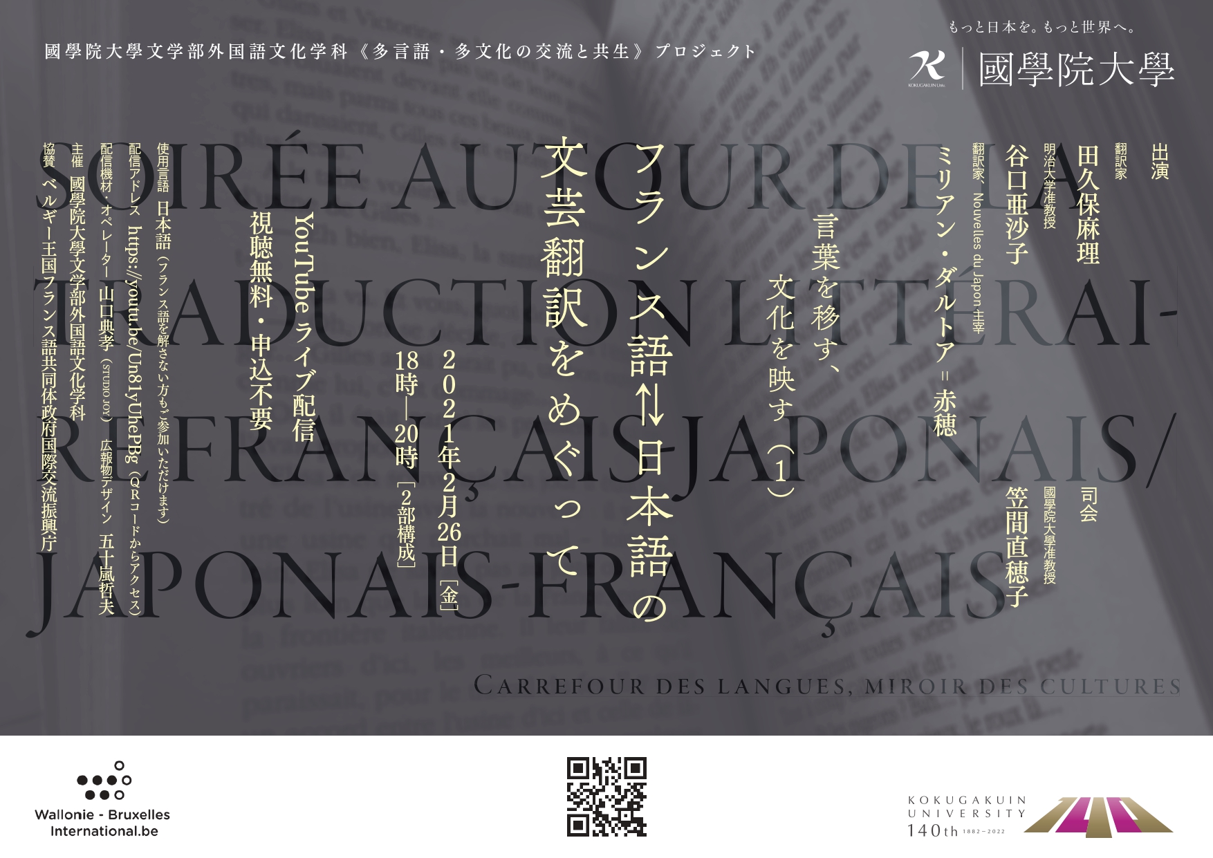 第2部では、「翻訳対決」のお二人に、日本語からフランス語への翻訳家として知られ、日本語短編小説の仏訳サイト「ヌーヴェル・デュ・ジャポン」主催者でもあるミリアン・ダルトア=赤穂さんを加え、日→仏、仏→日の双方向で、この二言語のあいだの翻訳について、翻訳家の立場から考えていきます。