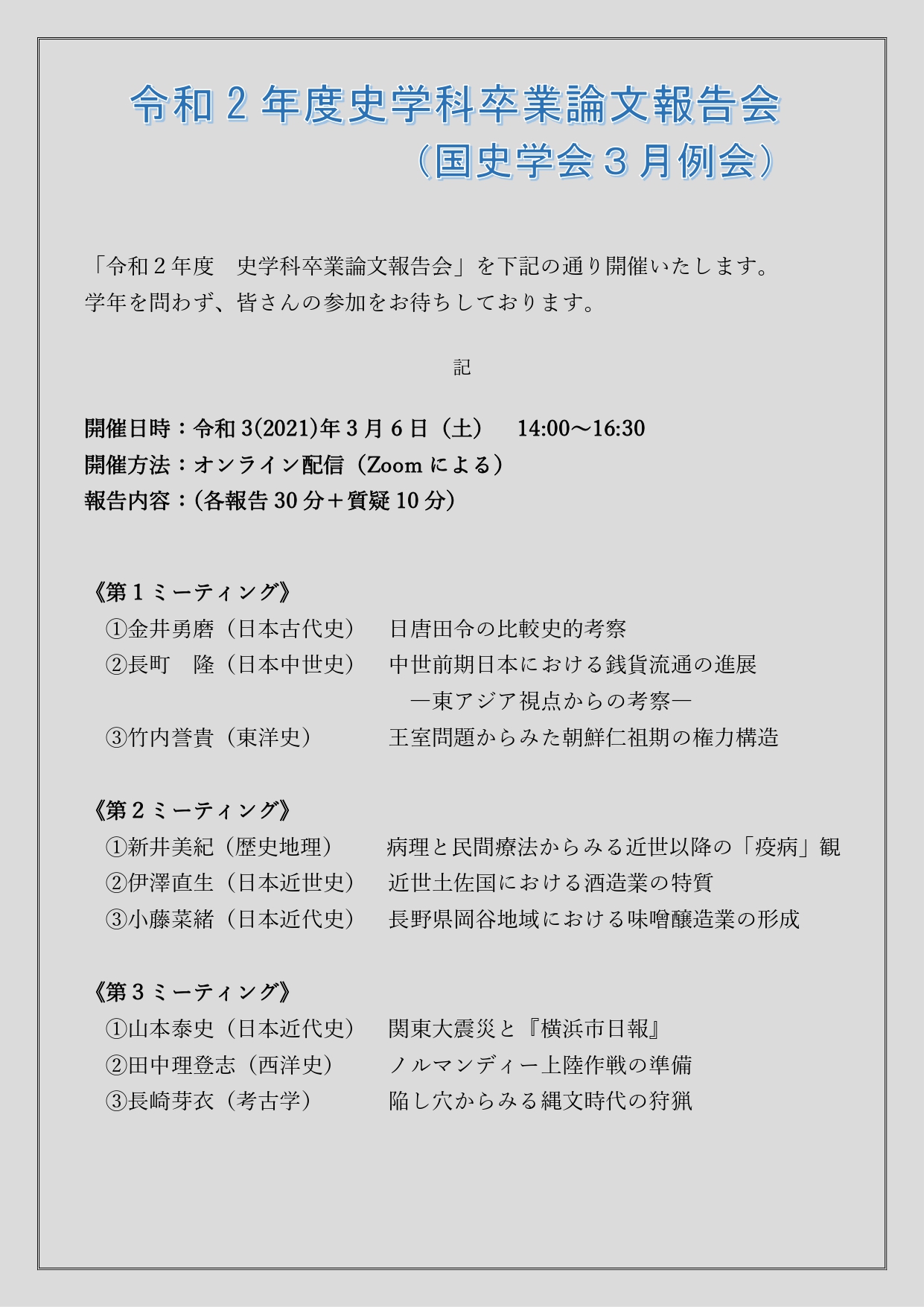 本会は、国史学会との共催により、史学科推薦系入学者の入学前教育として実施されます。