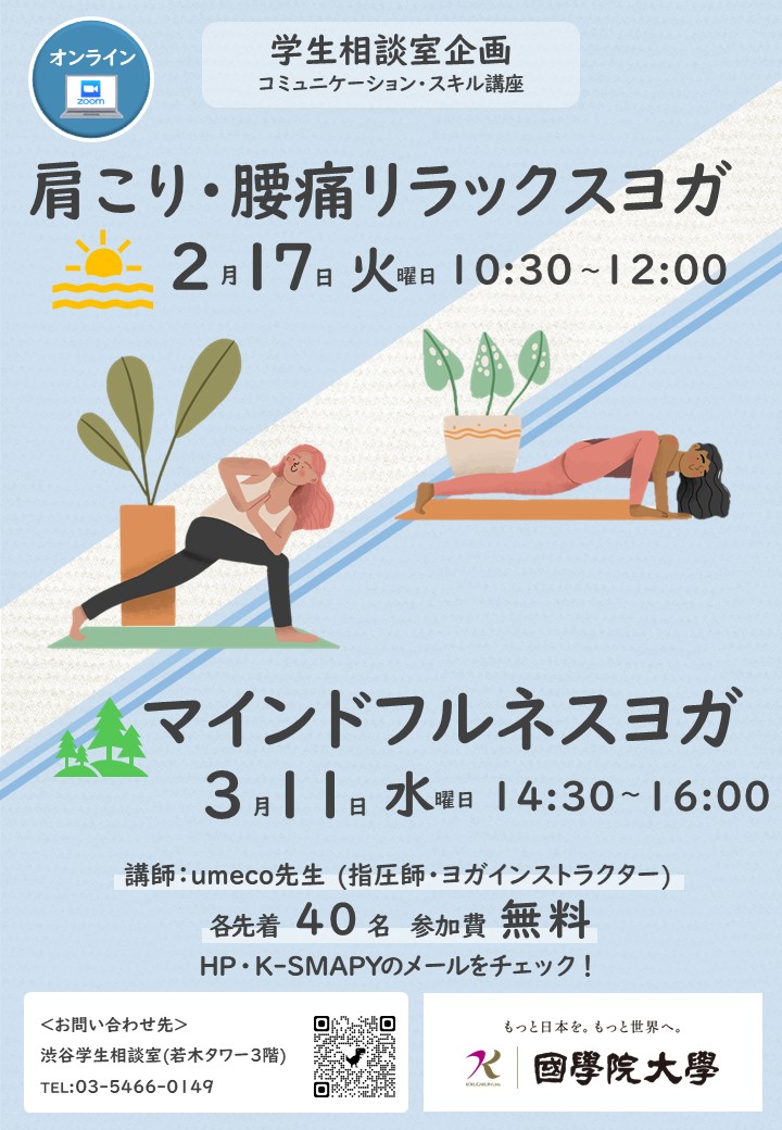 【募集開始】肩こり・腰痛リラックスヨガ <オンライン開催> 学生相談室企画