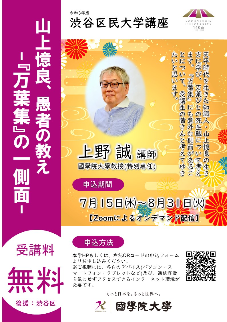 國學院大學エクステンションセンター TEL:03-5466-0270 e-mail: jigyou★kokugakuin.ac.jp(★を@に変えてください) |