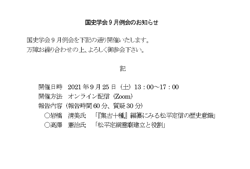 お問い合わせ kokushigakkai.kinseishi*gmai.com