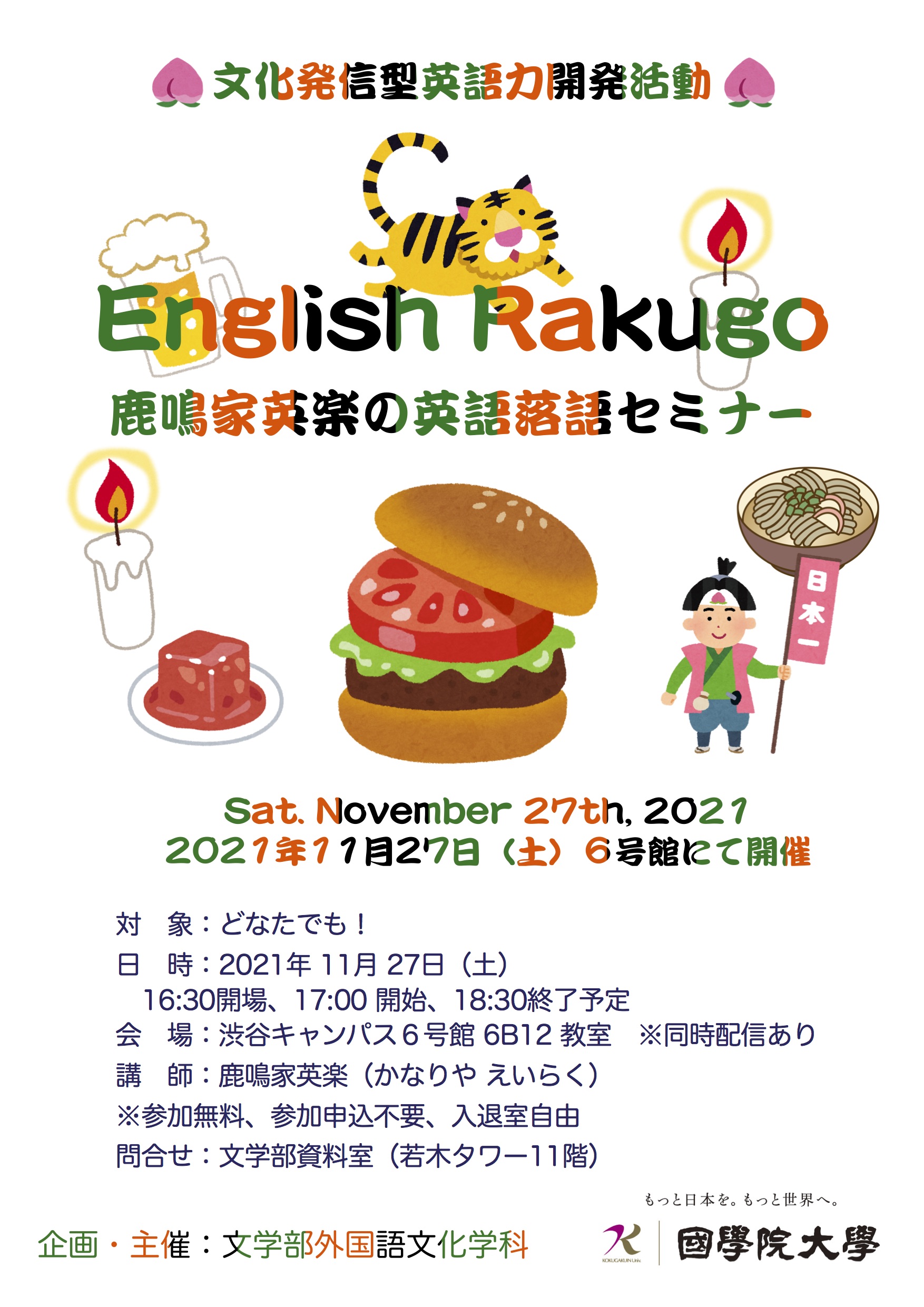 | 問い合わせ | 文学部資料室、企画・主催:文学部外国語文化学科 |