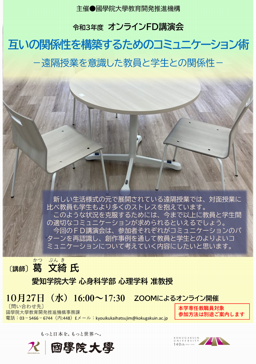 【問い合わせ先】國學院⼤學教育開発推進機構事務課