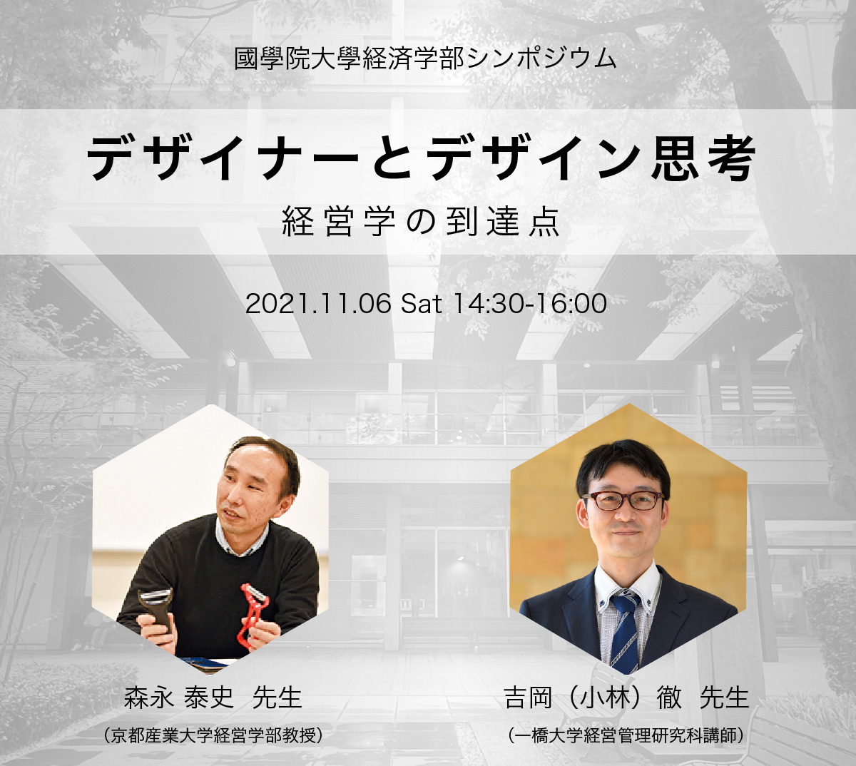 経済学部では、毎年、経済・経営をテーマとした講演会やシンポジウムを実施しております。本年度のテーマは「デザイン思考」です。デザイナーの考え方や問題への取り組み方は、近年注目が集まっているものの概念として曖昧でわかりにくい部分もあるところです。本シンポジウムでは森永泰史先生(京都産業大学経営学部)と吉岡(小林)徹先生(一橋大学経営管理研究科)をお招きし、経営学でデザイン思考やその関連領域をどのように理解してきたのかご講演いただきます。森永泰史先生は『経営学者が書いたデザインマネジメントの教科書』(同文舘出版、2016年)や『デザイン、アート、イノベーション』(同文舘出版、2021年)といった著作があるこの領域の専門家です。また、吉岡(小林)徹先生は知的財産や研究開発チームのマネジメントなどを研究されているイノベーション領域の気鋭の研究者です。普段の授業では十分に聞くことのできない先端分野について、専門家の先生方から直接ご講演いただける貴重な機会となります。ふるってご参加ください。