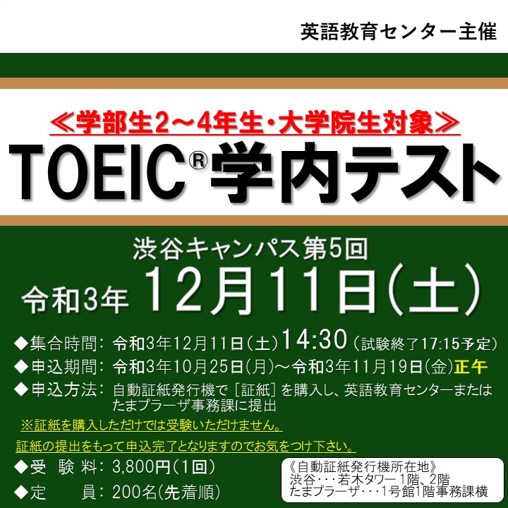 ③R3年度TOEIC学内テスト(12月11日渋谷)を選択