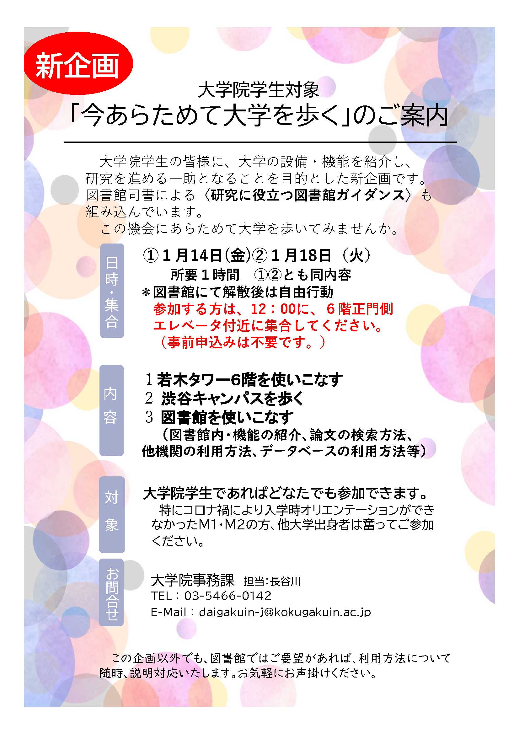 | 問い合わせ | 大学院事務課_TEL:03-5466-0142 / E-Mail:daigakuin-j@kokugakuin.ac.jp |