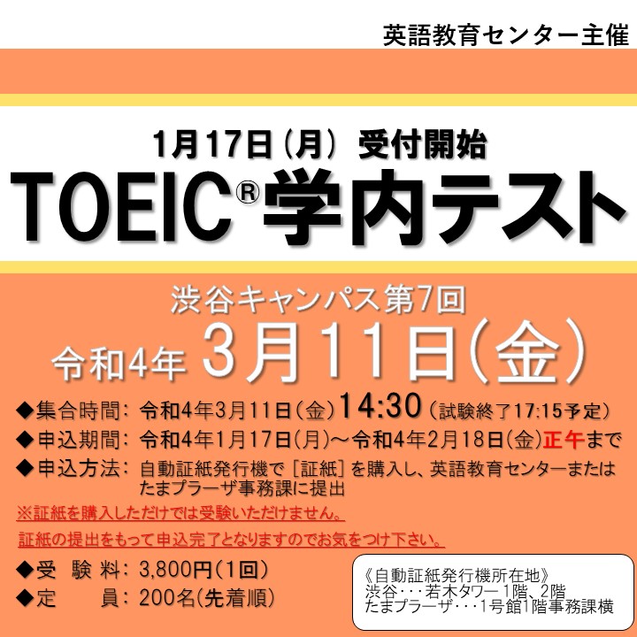 ③R3年度TOEIC学内テスト(3月11日渋谷)を選択