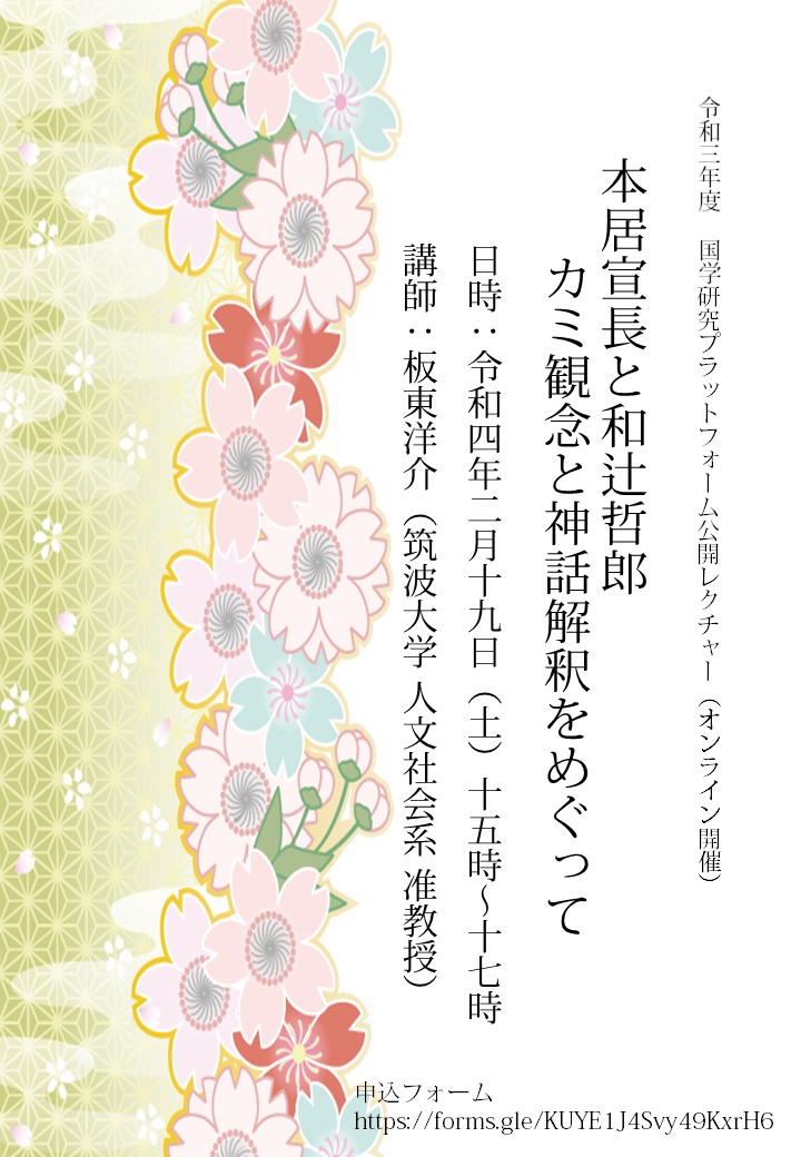 テーマ 「本居宣長と和辻哲郎 カミ観念と神話解釈をめぐって」