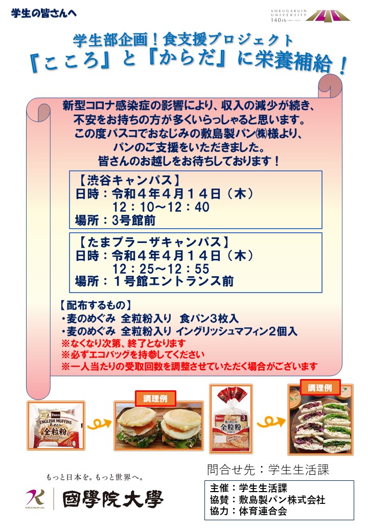 新型コロナ感染症の影響により、収入の減少が続き、 不安をお持ちの方が多くいらっしゃると思います。 この度、Pasco(パスコ)でおなじみの敷島製パン㈱様より、 パンのご支援をいただきました。 皆さんのお越しをお待ちしております!