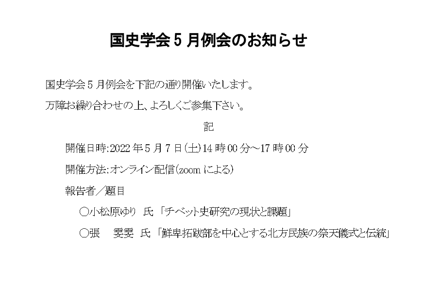 国史学会5月例会を以下の通り開催いたします。