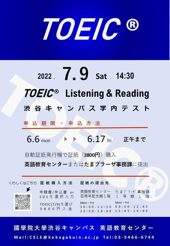③R4年度TOEIC学内テスト(7月9日渋谷)を選択