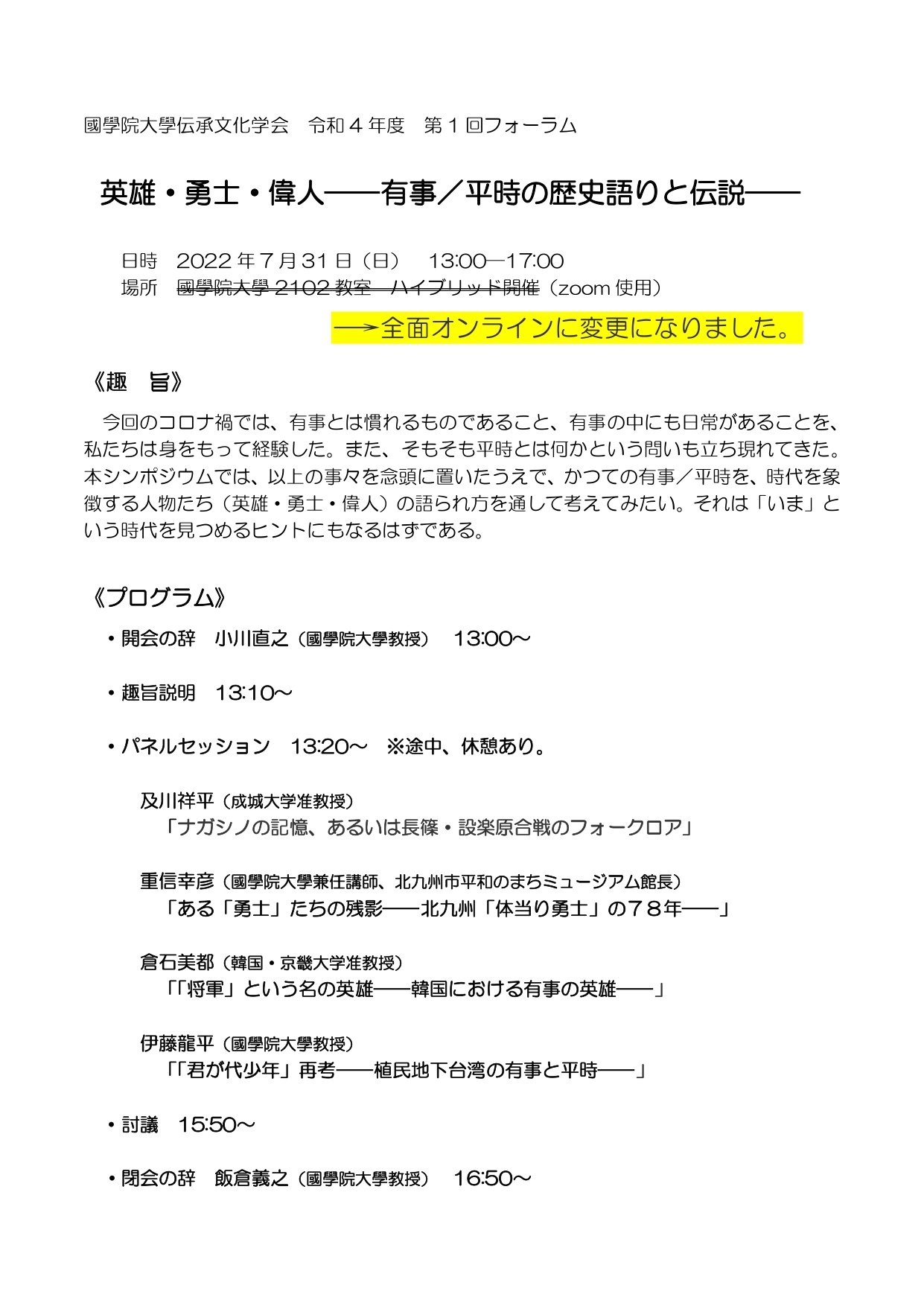 ・閉会の辞 飯倉義之(國學院大學教授) 16:50~