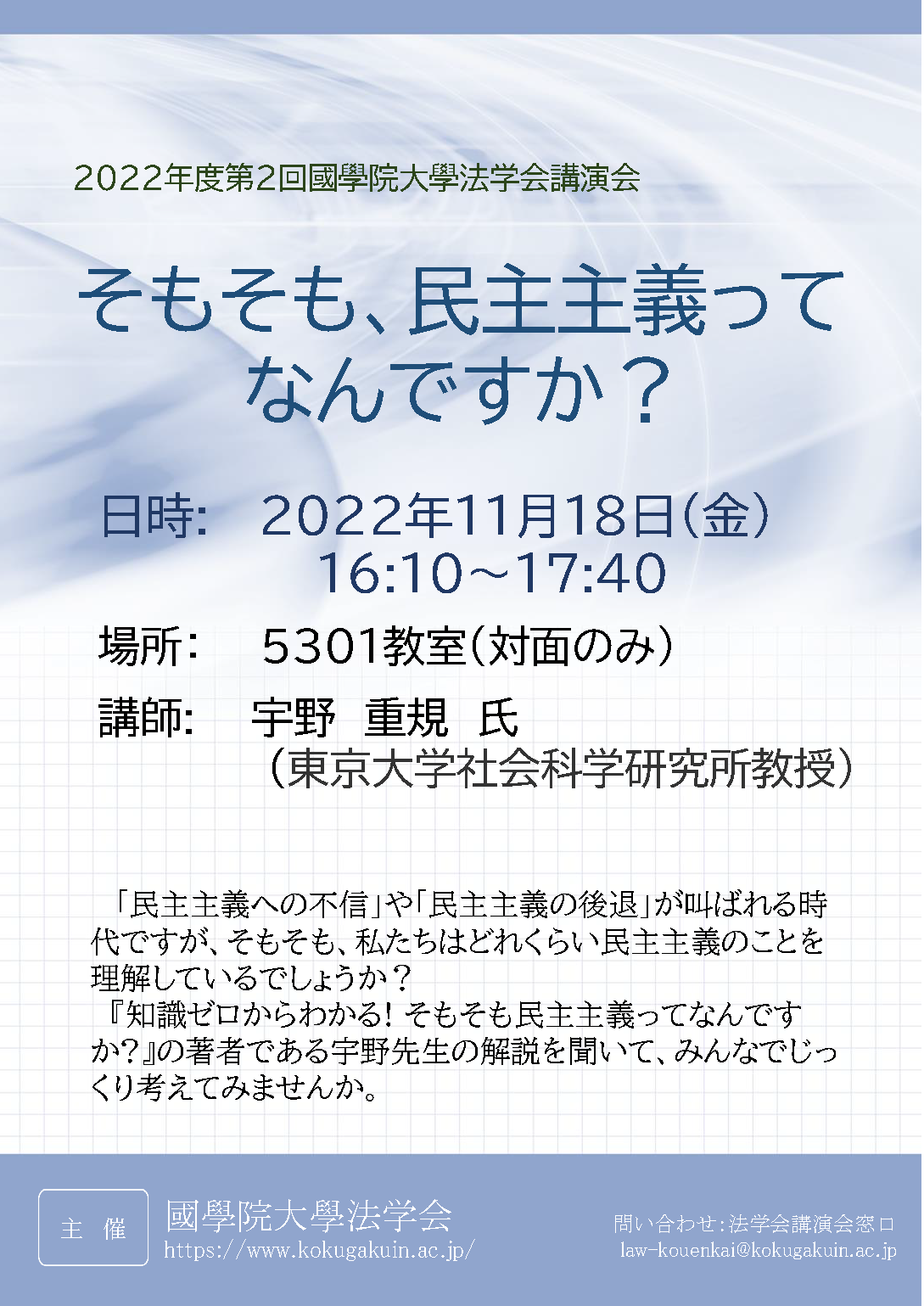 令和4年度第2回法学会講演会「そもそも、民主主義って何ですか?」を開催します。
