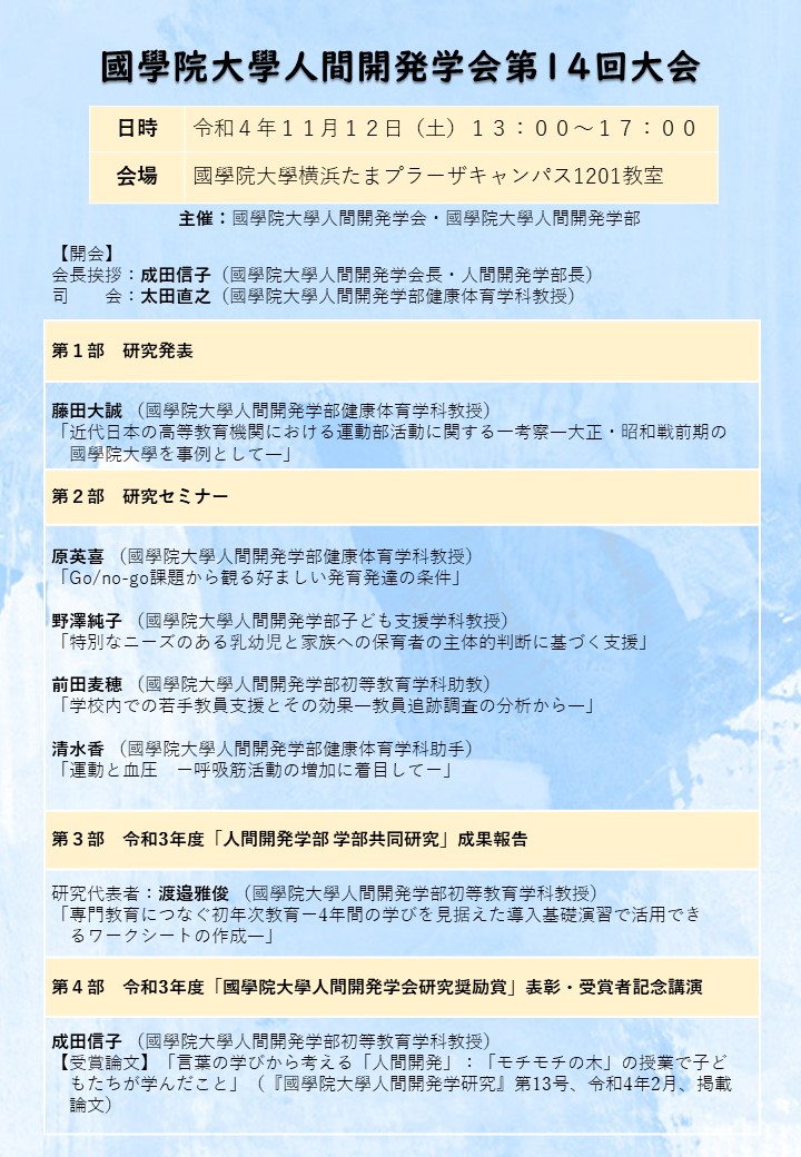 | 問い合わせ | 主催:國學院大學人間開発学会・國學院大學人間開発学部 |