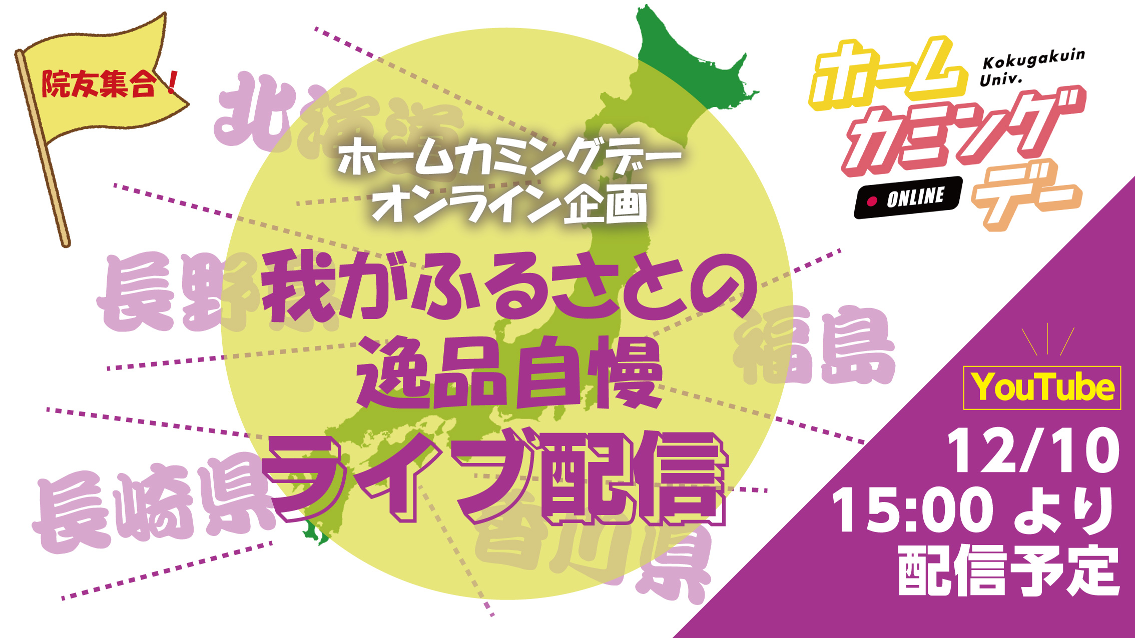 ホームカミングデー企画「我がふるさとの逸品自慢」の実施について(オンライン配信) 全ての方向け Tweet 2022年12月9日更新 日時 令和4年12月10日(土)15:00~16:00(予定) 問い合わせ 校友課 10月15日(土)のホームカミングデー(対面開催)の「物産展」に出店くださった支部を中心に、地元出身の院友・教職員が、ふるさとイチオシの品をご紹介します。 You Tube チャンネルよりご参加ください。 ご参加はこちらから