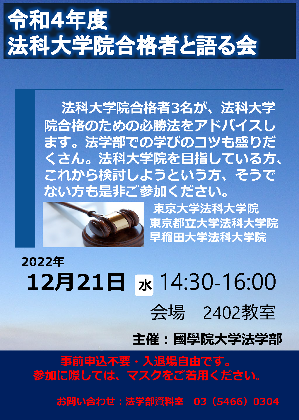 2022年12月21日(水)に「令和4年度法科大学院合格者と語る会」を開催します。