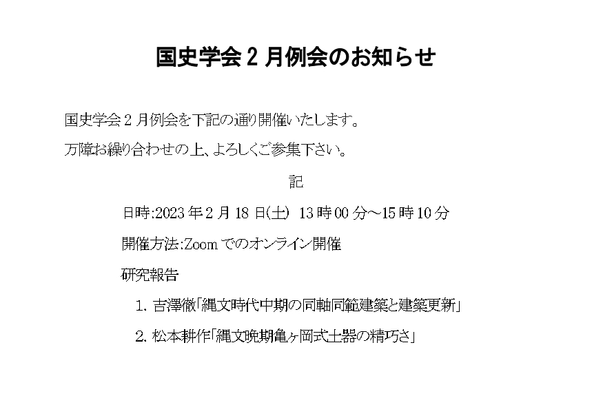 国史学会2月例会を以下の通り開催いたします。