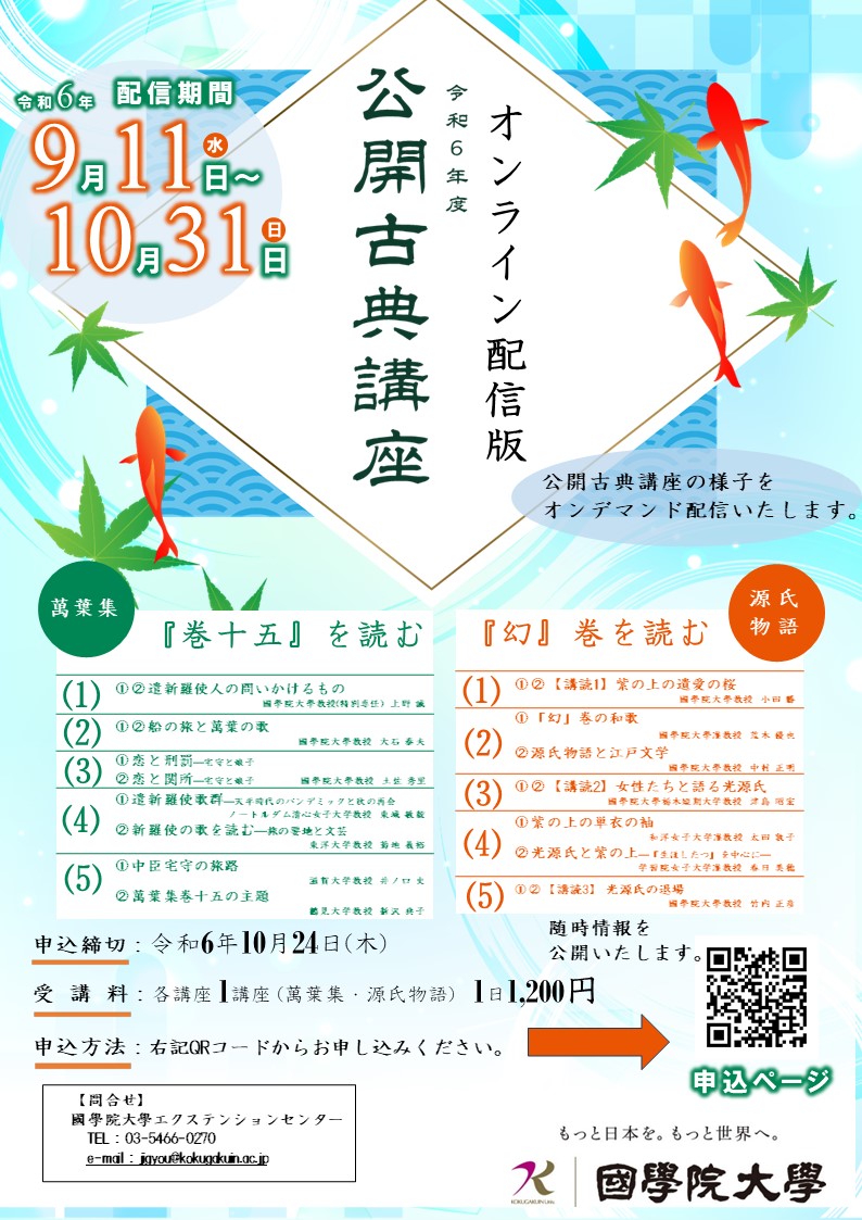 令和6年7月24日(水)~7月28日(日)に行われました、公開古典講座をオンライン配信いたします。