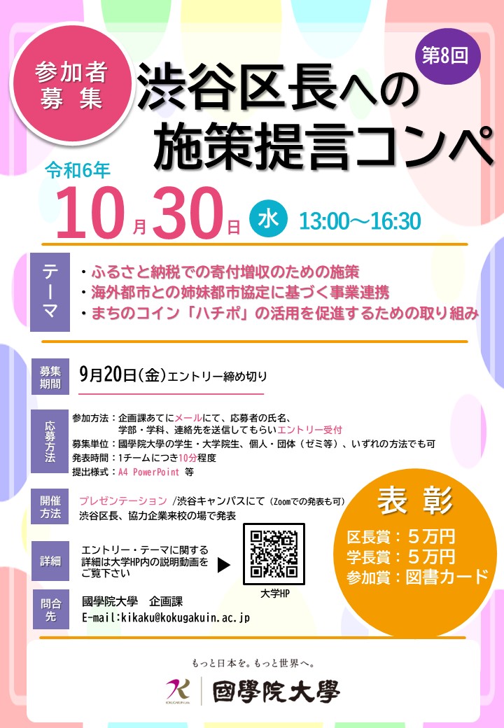 令和6年度で8回目となる「渋谷区長への施策提言コンペ」を開催いたします。