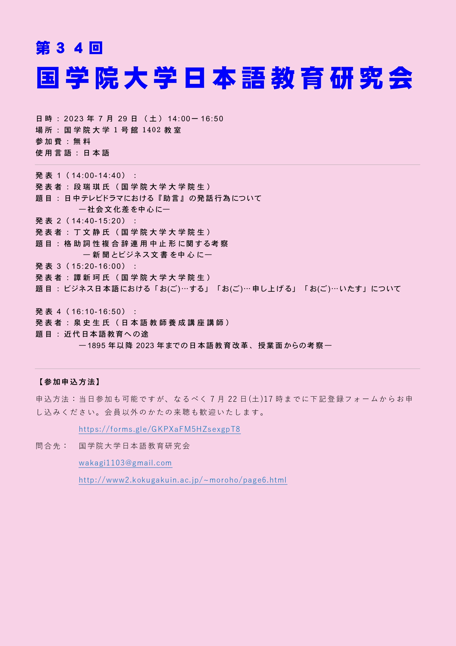 問合せ先:国学院大学日本語教育研究会
