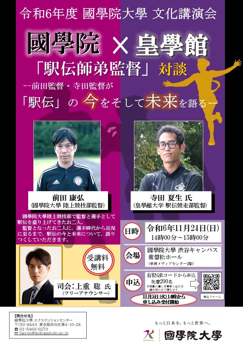長らく駅伝中継・実況に携わっていらっしゃいました上重アナウンサーを司会にお招きし、監督となったお二人に、選手時代から近況に至るまで、駅伝の今と未来について、語りつくしていただきます。