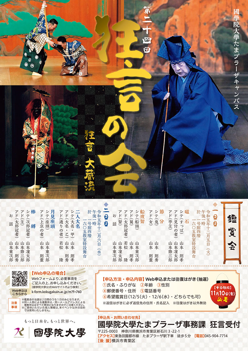 | 会 場 | 國學院大學たまプラーザキャンパス1号館 1605教室 特設舞台 |