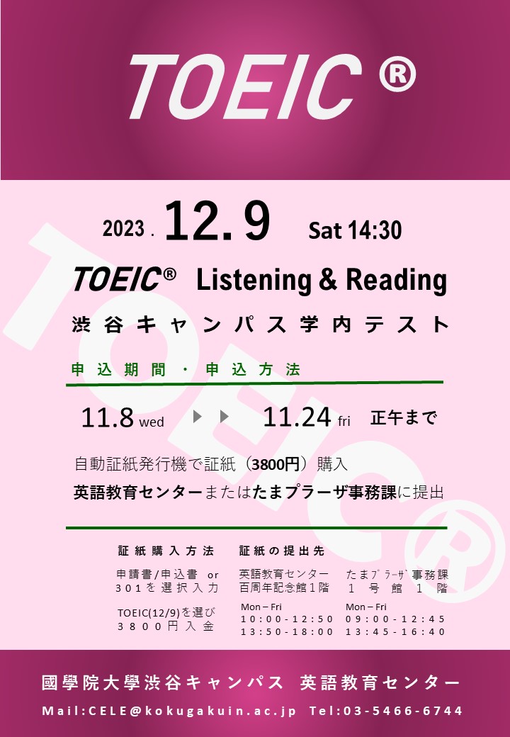 ③R5年度TOEIC学内テスト(12月9日渋谷)を選択