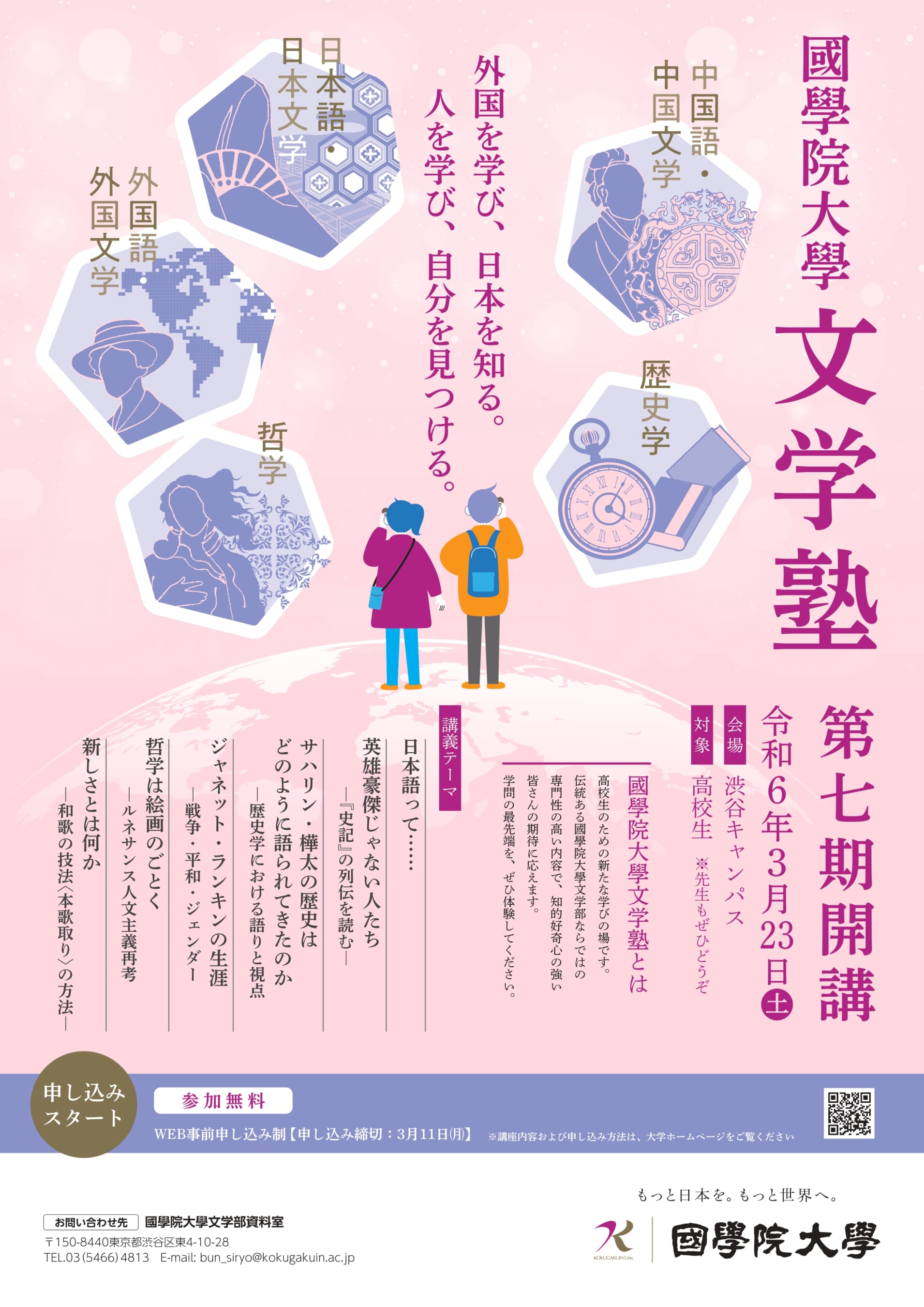 [文学塾申し込み]申込期間:令和6年2月7日(水)9:00~3月11日(月)