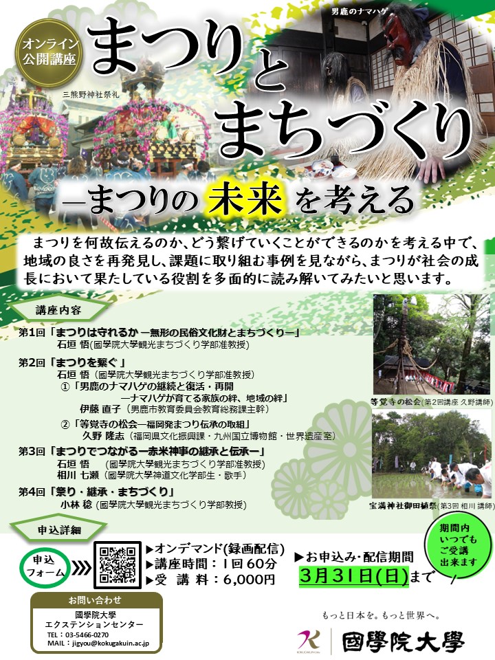 國學院大學エクステンションセンター TEL:03-5466-0270 e-mail : jigyou★kokugakuin.ac.jp (★を@に変えてください) |