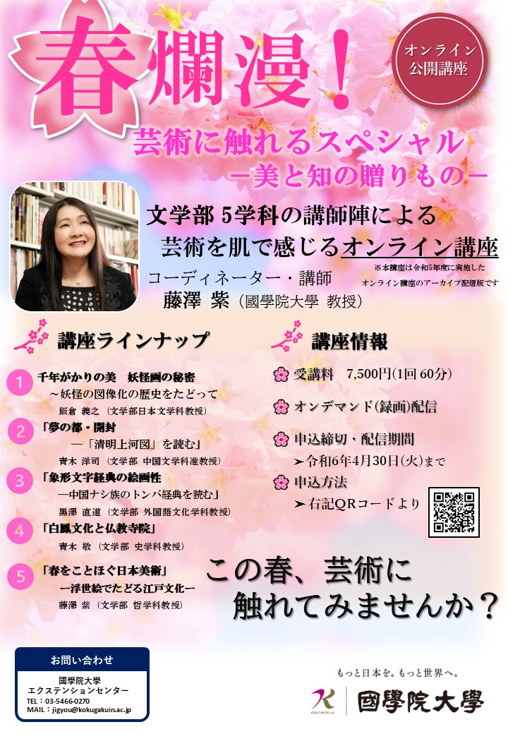 國學院大學文学部の教員陣による芸術、美をテーマとしたオンライン講座です。