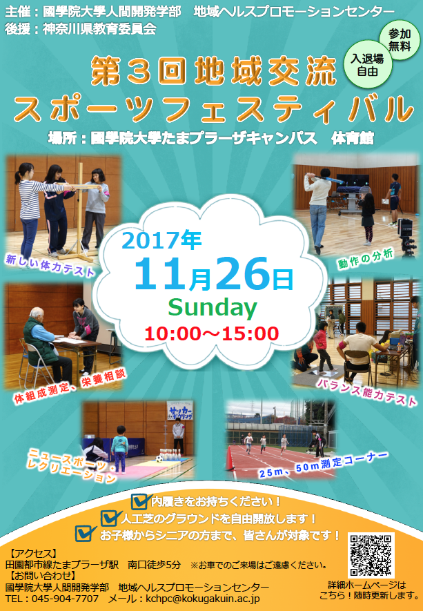 人間開発学部 地域ヘルスプロモーションセンターでは、今年も地域の皆様を対象とした「第3回 地域交流スポーツフェスティバル」を開催致します。